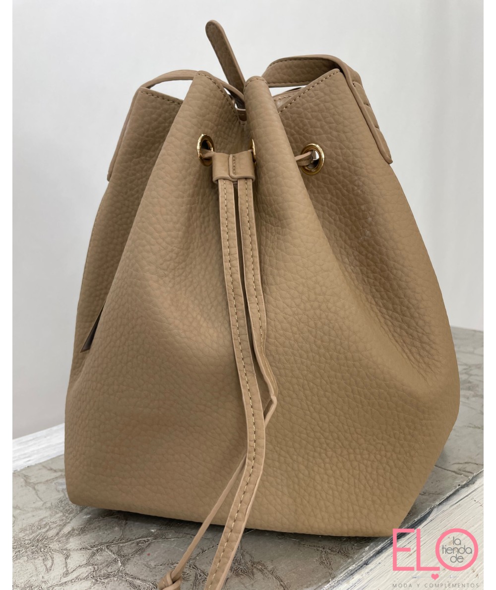Bolso de tamaño de polipiel con detalles dorados, lleva un bolsito dentro para guardar las cosas y que no se vean.