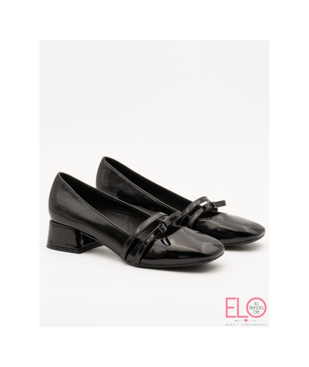Zapatos de charol de color negro.