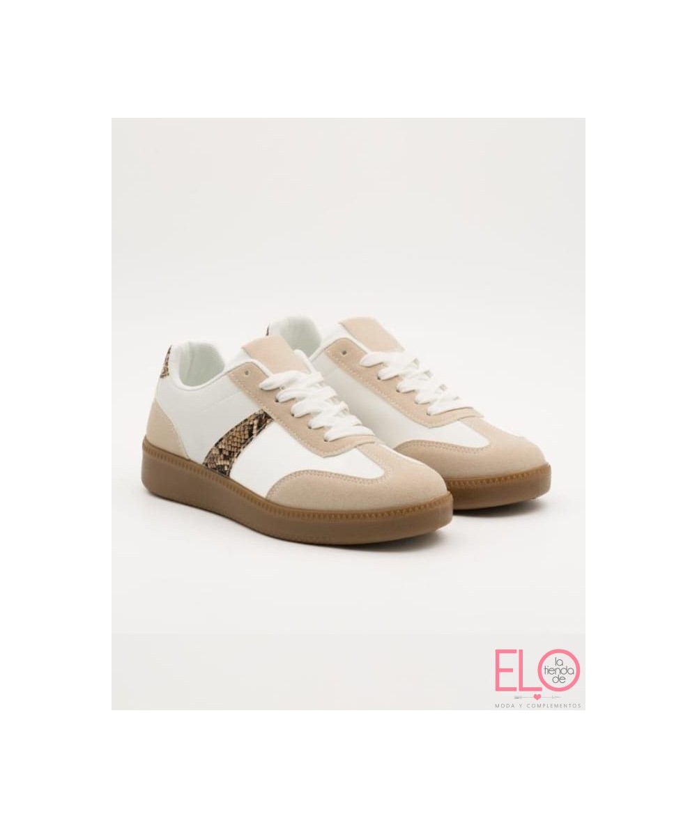 Lleva borde de color beige y suela de color camel.
