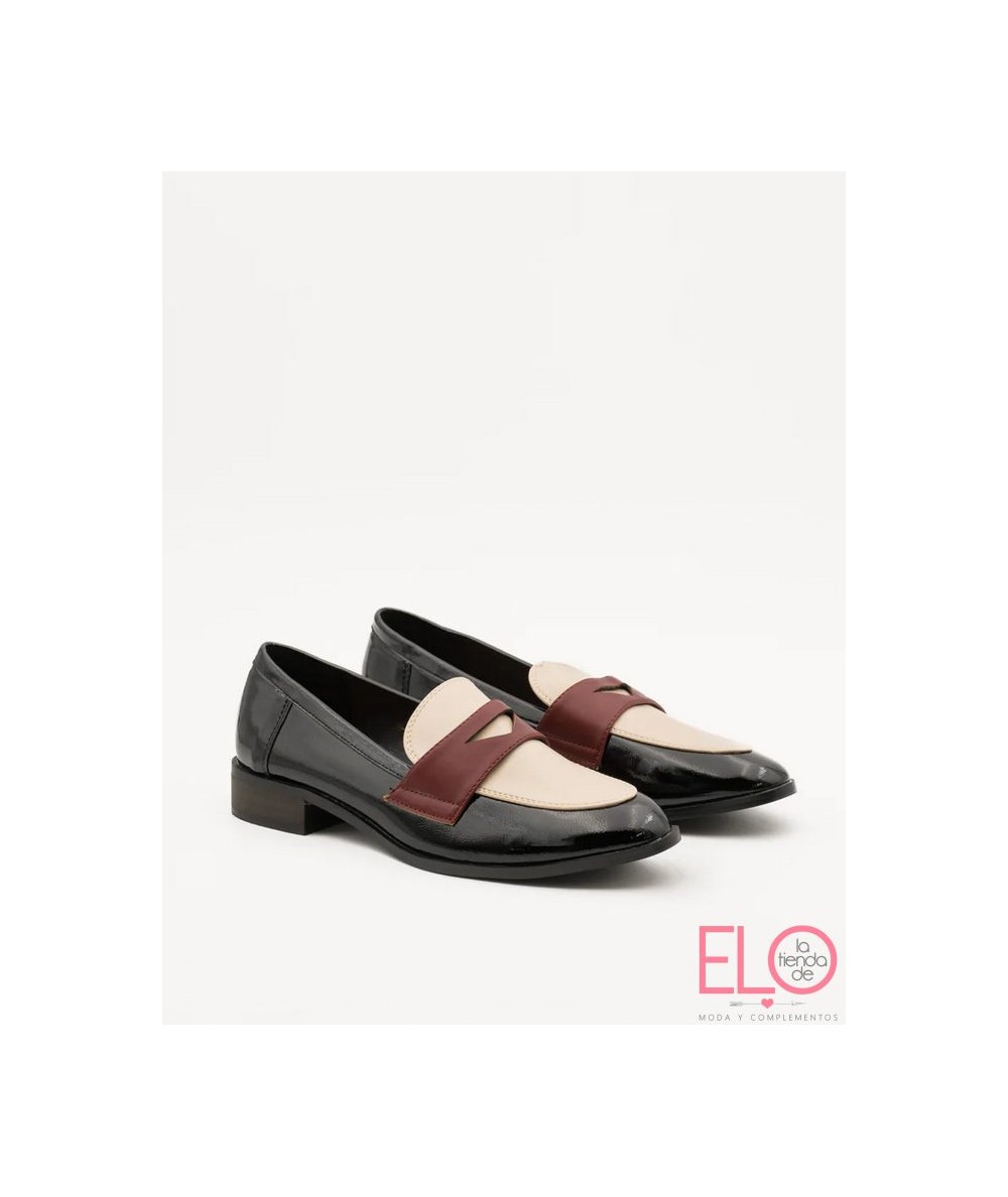 Zapato de charol de color negro.