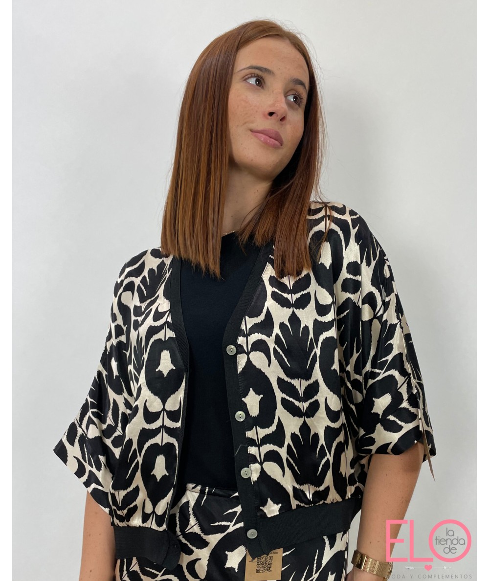 Chaqueta corta de tejido satinado.