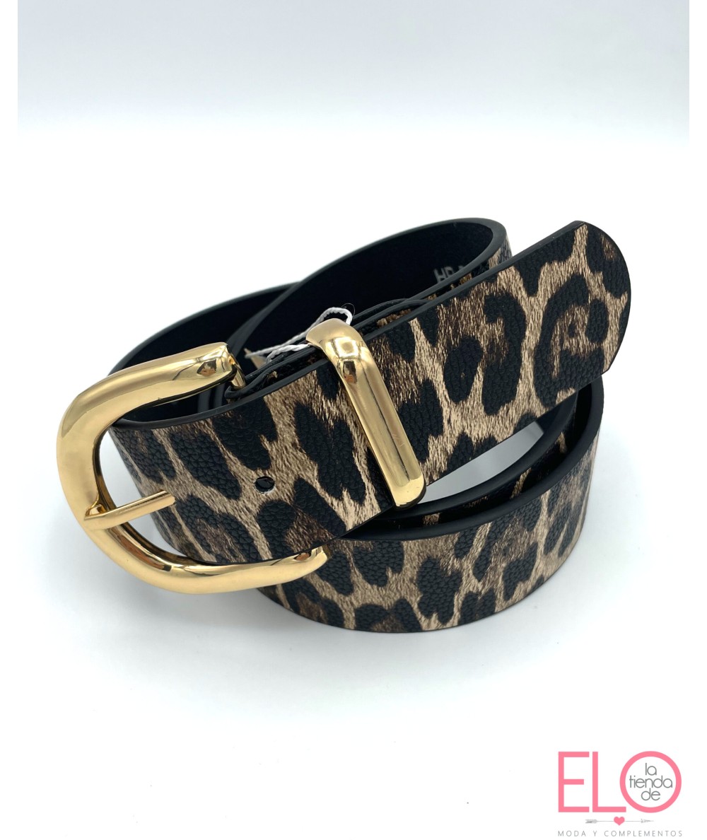 Cinturon con estampado de animal print y hebilla dorada