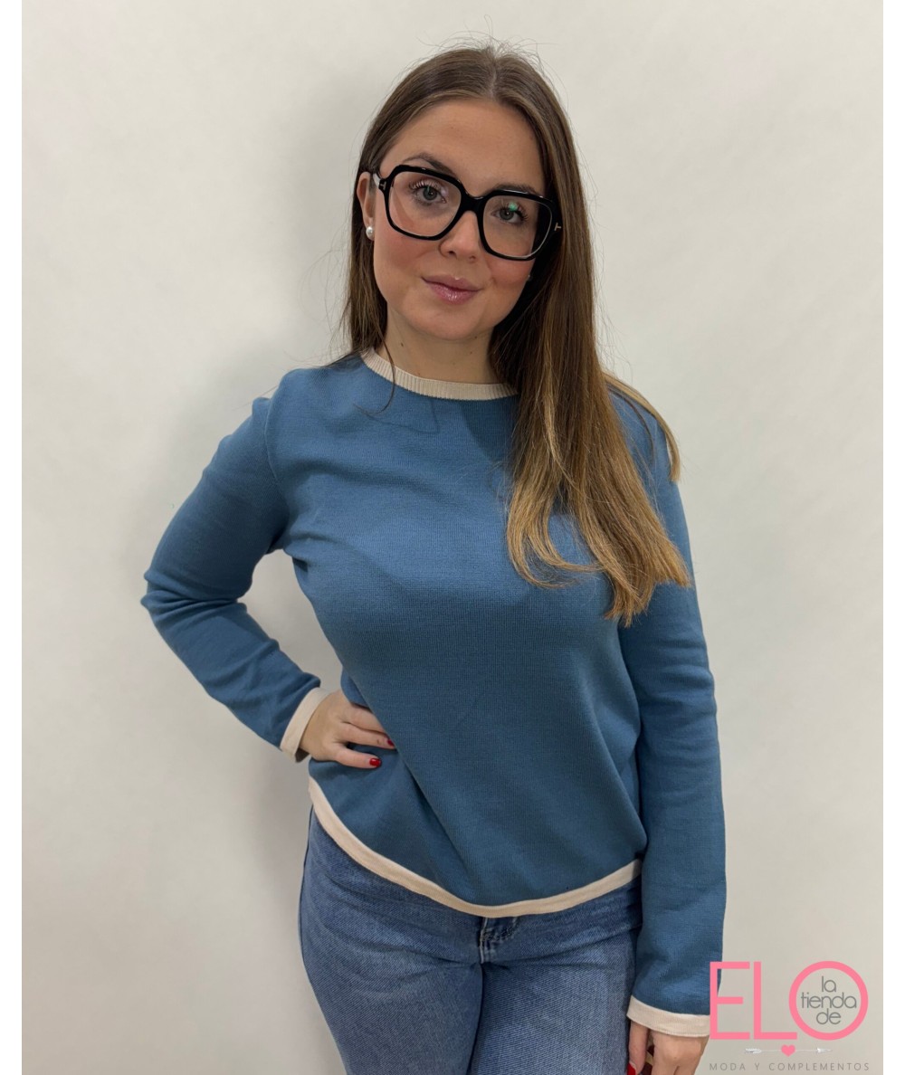 Lleva borde de color beige en el cuello, los puños y la cintura.