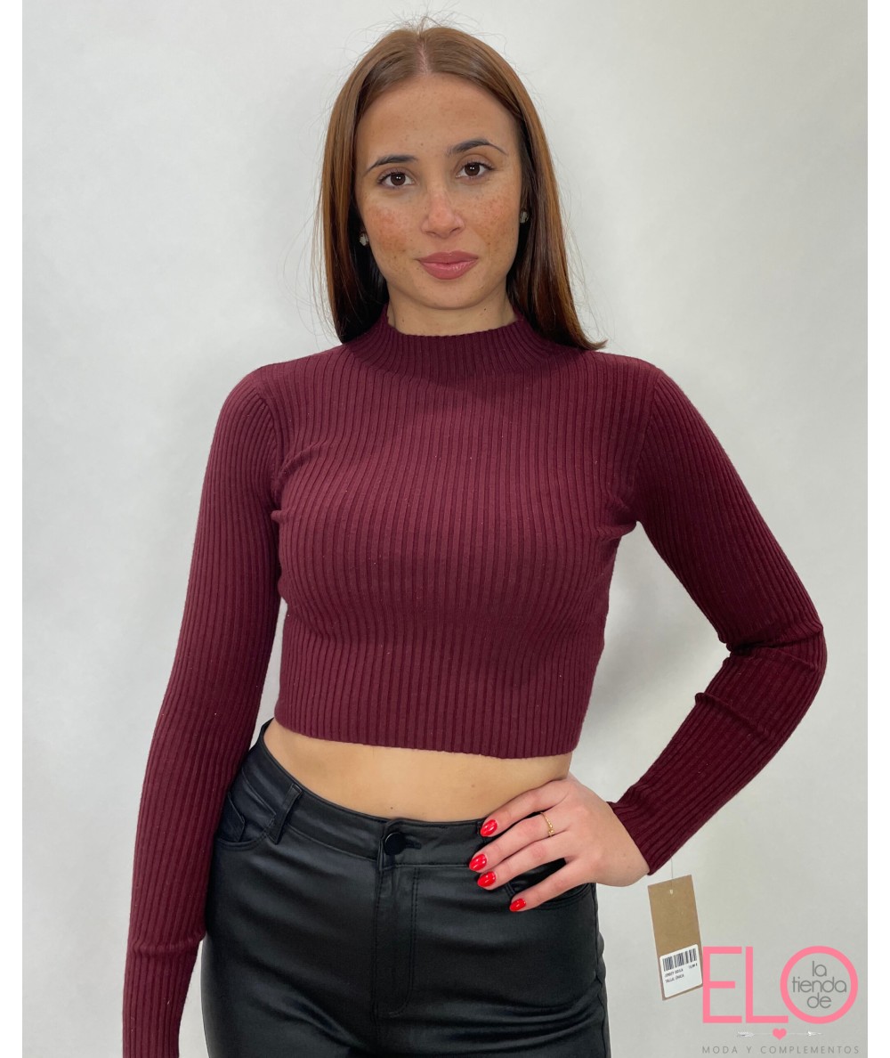 Jersey corto de color granate.