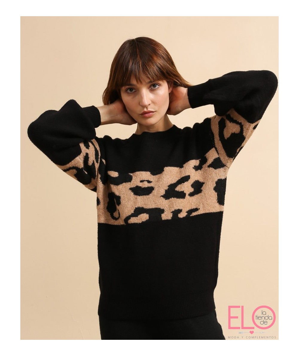 Lleva una franja de color camel con animal print en la mitad.