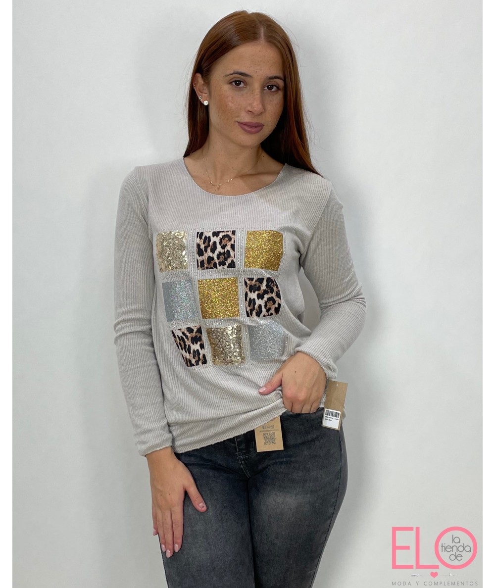 lleva estampado de cuadros con leopardo y con glitter oro y plata.