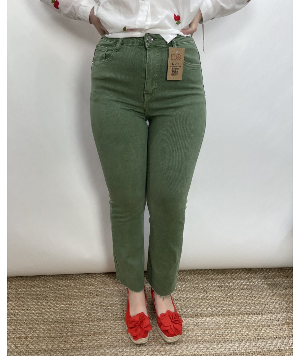 Pantalón denim de color verde oscuro.