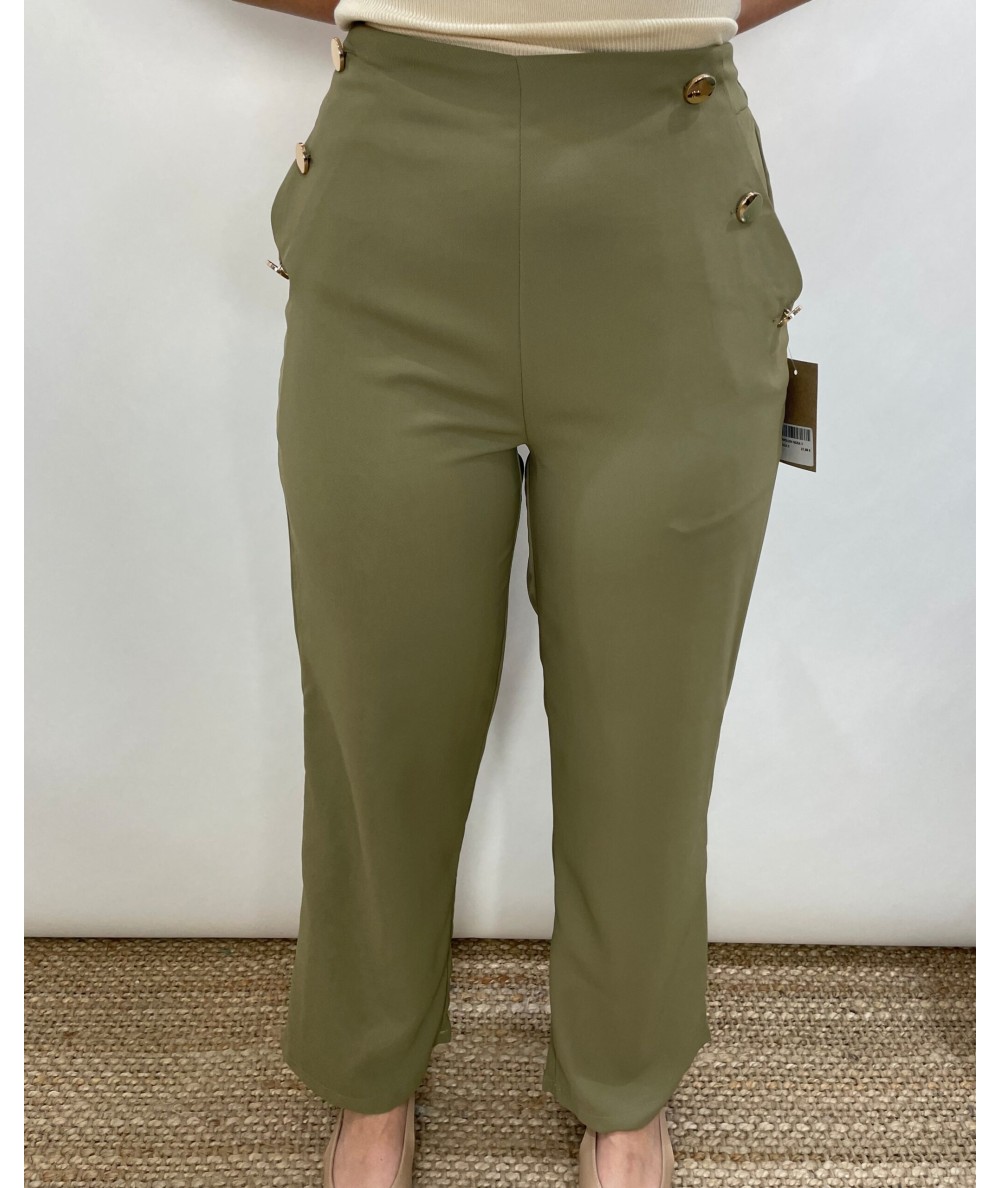 Pantalón de tela en color verde militar.