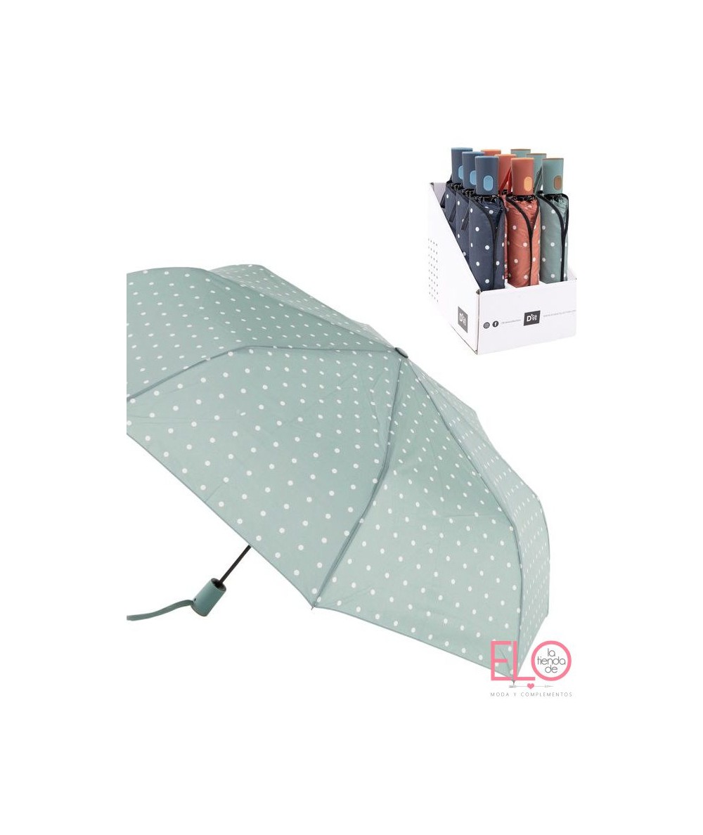 Paraguas con estampado de puntos blancos, disponible en varios colores.