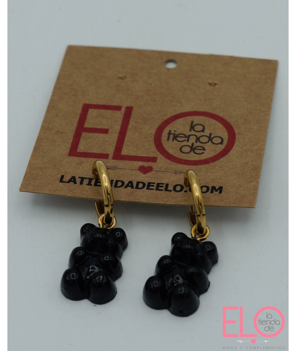 Lleva colgantes en forma de ositos negros.