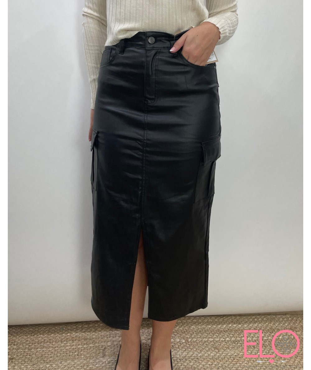 Falda larga en sintético de color negro.