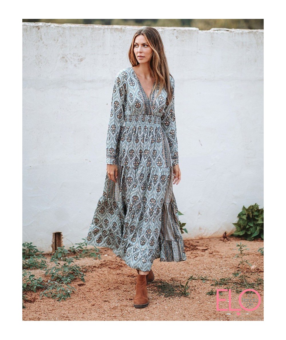 Vestido largo de color verde con estampado de mándalas.
