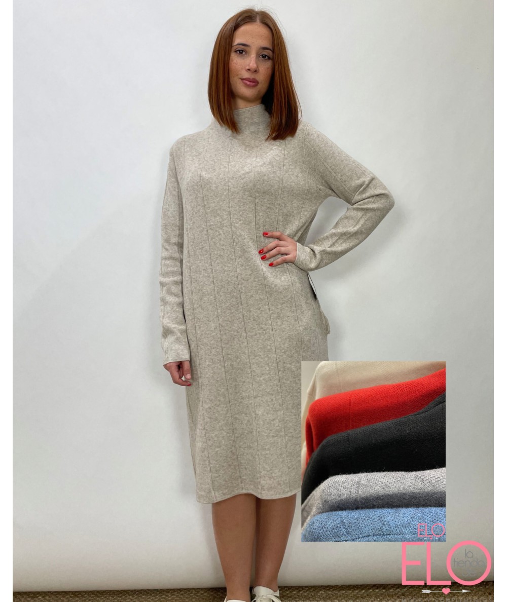 Tiene rayas verticales en el tejido y bolsillos laterales.